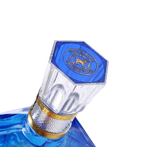 蓝白渐变色弧形瓶身,优雅精致,便于手持倒酒。用高温制曲,在老窖龄中长久发酵,再用多种粮食酿造,赋予酒的绵柔与顺喉。