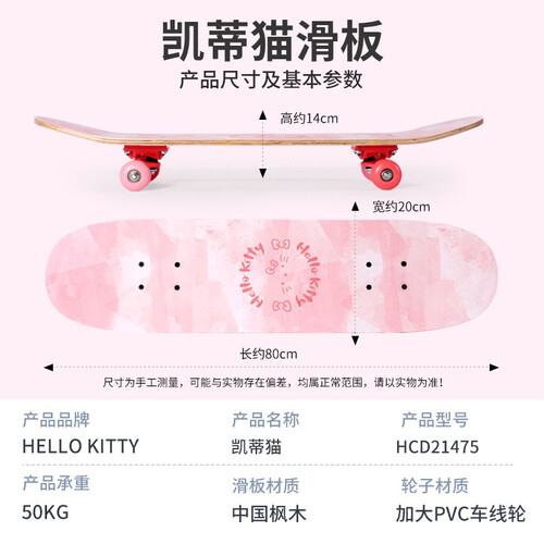 热塑树脂材质的踏板,抗压能力强,使用寿命更长久。车身印有粉嫩的凯蒂猫图案,可爱又生动,更受孩子喜爱。