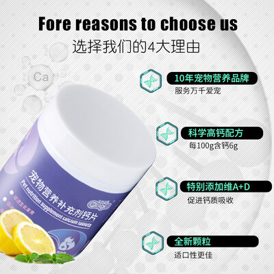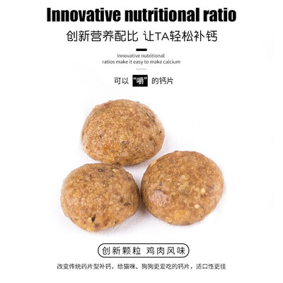 钙片内含鸡肉成分,味道香嫩容易进食,宠物日常补钙不用愁。高钙的科学配方,提供更多营养元素,适合各种特殊时期能量补充。