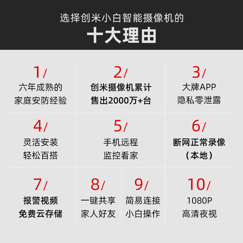 米家APP256GSD卡存储保障您的隐私安全,360°旋钮和120°广角更广泛的侦测;6颗夜视灯珠,夜晚清晰可见。