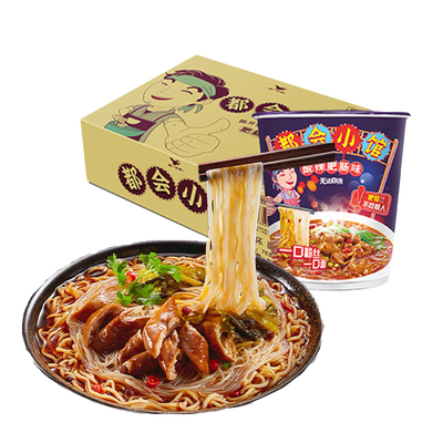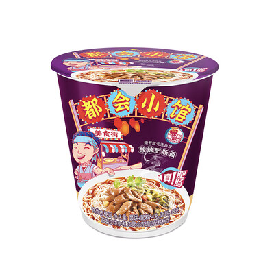 一款让人无法自拔的肥肠面,面粉结合,并加入辣爽的实物包、风味包,入口麻辣鲜香,让人回味悠长。