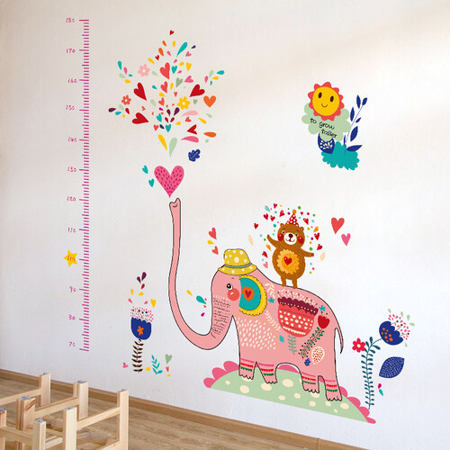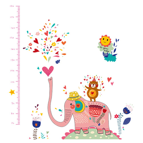 粉色小象图案设计,少女心十足,身高贴刻度,准确方便在家中测量身高。贴合在室内墙面,平稳紧密,不易出现卷边。