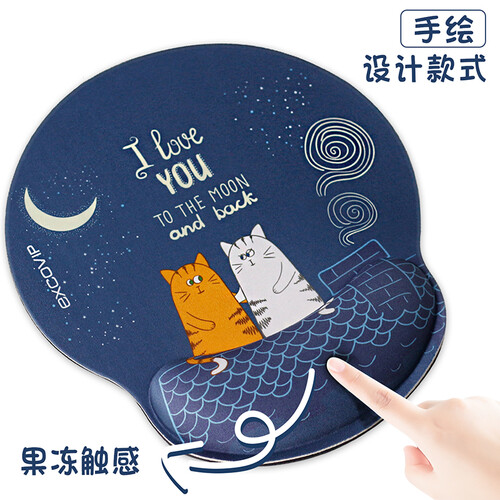 配备护腕垫,舒适高度能帮助分散手腕压力,长时间输入舒适不累手。外观增设两只猫印花点缀,牵手望天姿态,软萌又可爱。