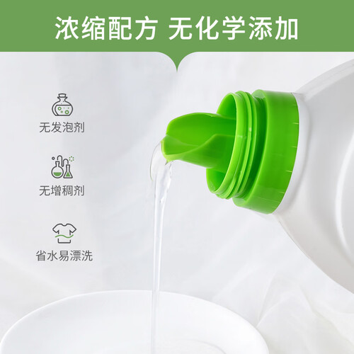 蕴含天然有机植物精华,能有效理顺衣物纤维,使用后织物触感舒适。配方温和,贴身衣物也能使用。不增加增稠剂,更加健康放心。