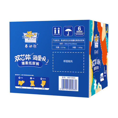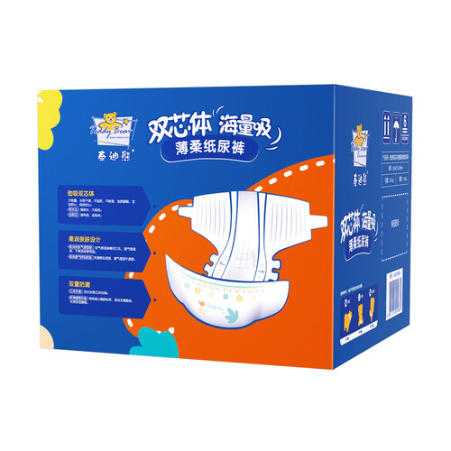 高弹力腰围让宝宝能更好的安心入睡和活动,就像被妈妈抱着一样安心。双芯体的设计可以迅速吸收并且牢牢锁住尿液。