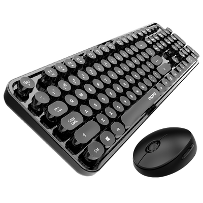键盘设计采取复古风格,圆形的键帽打字更舒适,间距增宽,带来便捷体验。无线信号强大,10米范围内可快速接收,扩大工作距离。