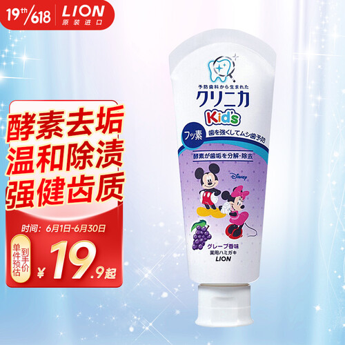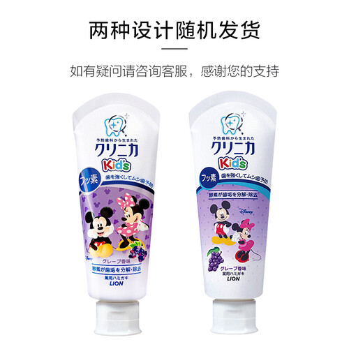 安全吞咽丨狮王米奇防蛀儿童牙膏含有葡萄提取物,不添加任何色素和添加剂,即使宝宝误食吞咽也不会造成危险,妈妈可以安心。