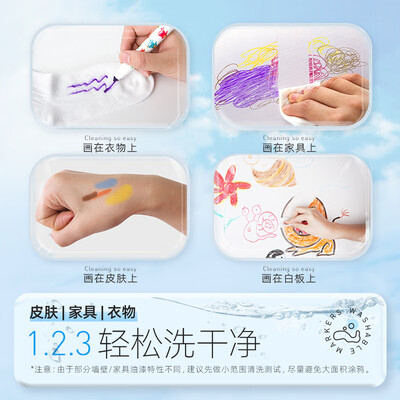 甄选韩国进口墨水,有效提升了其可水洗的性能。锥形笔头的设计,为孩子提供多角度的绘画选择。