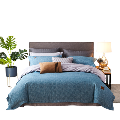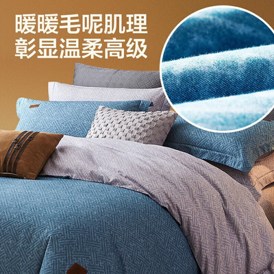 毛呢材质表面绘有简约几何线条,美观雅致,细密的孔雀蓝凸显宁静感。双面磨毛处理,更显温暖舒适,聚温力更突出。
