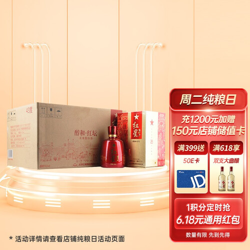 选取中段原酒进行窖藏熟化,酒体醇厚饱满,口感清香纯正。整箱的包装,内含多个礼品袋,佳节送礼或家庭中饮用都适合。