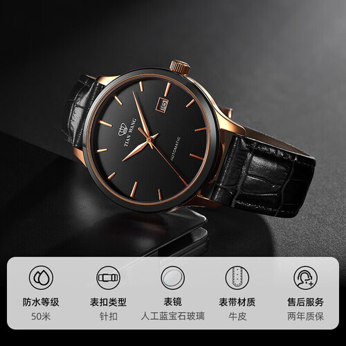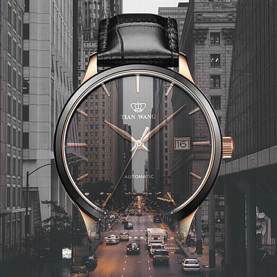 天王表这款手表在表盘上面进行了喷砂处理,立体的指针,和别致的陶瓷表圈,让手表显得更加有立体感,更加有质感。