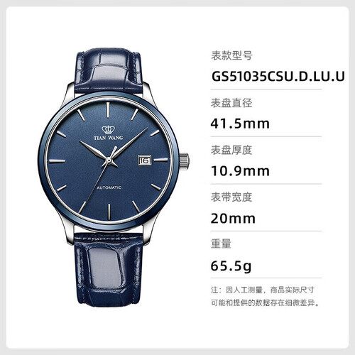 天王表 皮带机械男士手表