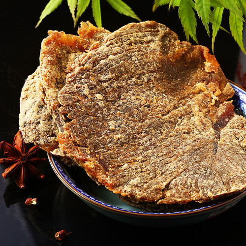 采用原肉切片修整,通过高温烘烤而成,入口带有浓郁五香味道。肉质纹理清晰有嚼劲,是白领加班补充能量的理想之选。
