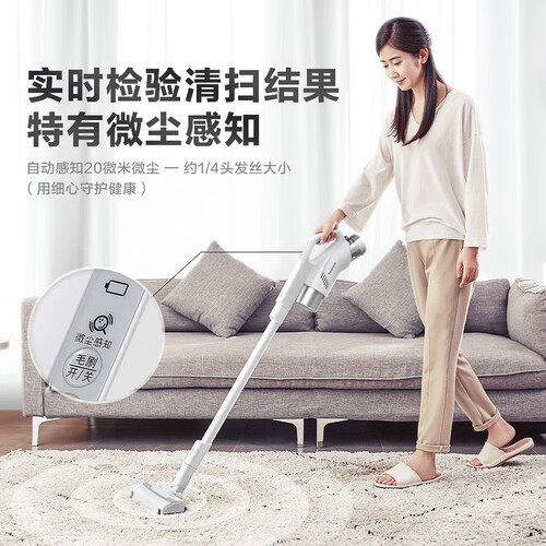 吸尘器采用可视化尘筒,灰尘量一目了然,提醒及时倾倒灰尘。内置无刷电机,吸力强劲,运行噪音低。