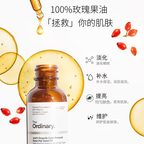 冷榨萃取玫瑰果油,深入补水滋养肌肤,轻松改善紧绷干皮。精华质地清透莹润,便于延展涂抹上脸,促进营养成分的有效吸收。