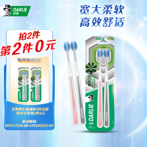 加宽刷头的设计,有效增加清洁面,减少刷牙时间,中间高两边低的山形刷毛,有利于牙刷贴合臼齿,使得口腔清洁更到位。