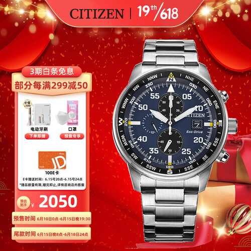 西铁城 深海蓝盘带夜光手表