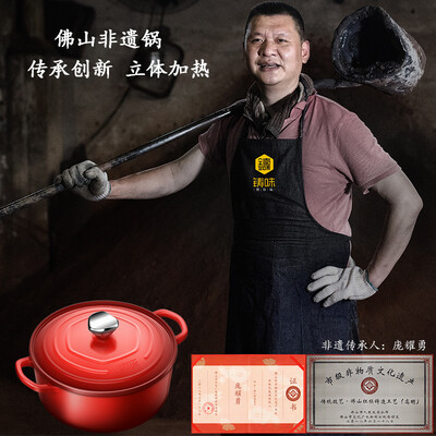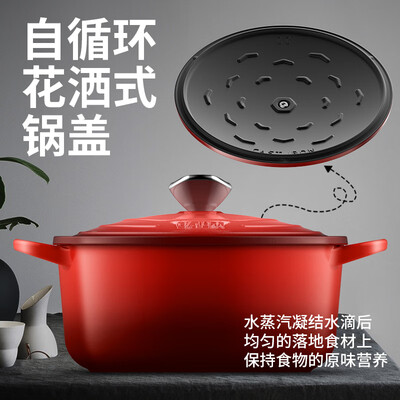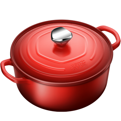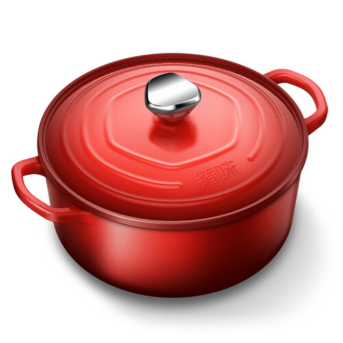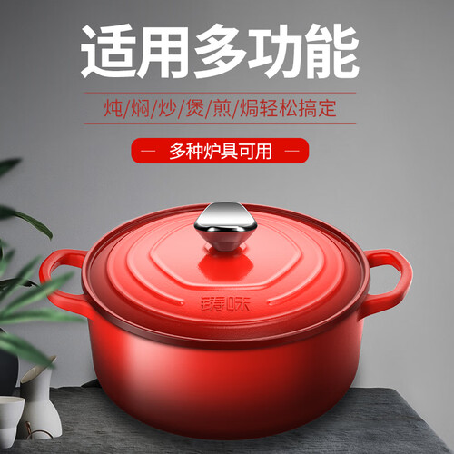 铸铁珐琅汤锅,其珐琅层由700℃以上高温烧制,无惧明火,且拥有较强的抗酸碱能力,可用来烹调番茄等酸性食物。
