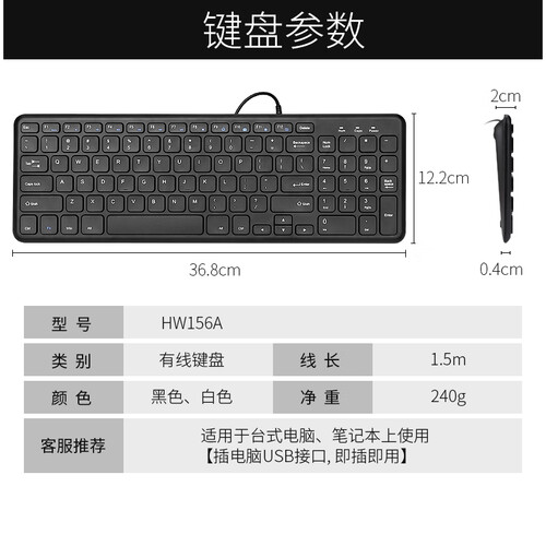 键盘超薄静音,净重仅240g,有丰富的多媒体功能,按键舒适顺畅,小巧轻便易携带,反应灵敏,字符清晰易辨。