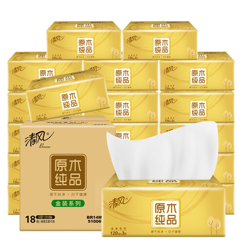 清风 可降解纯木浆原色抽纸