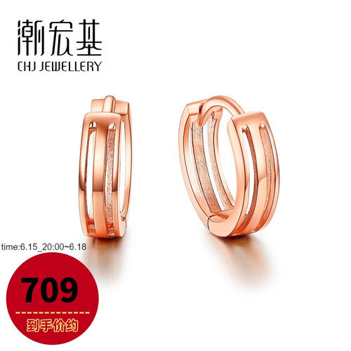 潮宏基 磨砂圆环K金耳饰