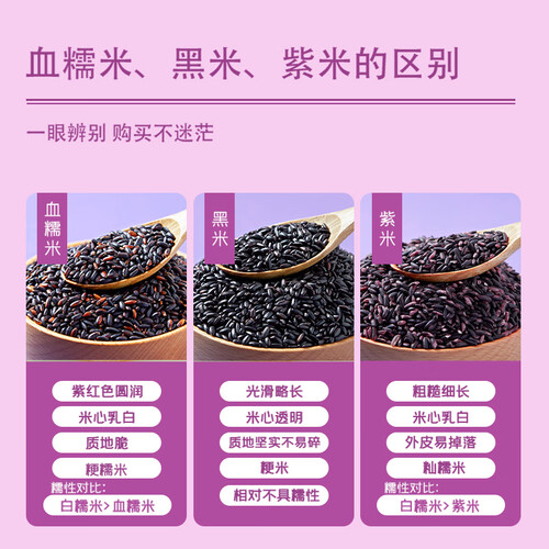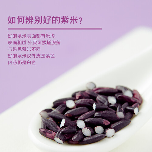 颗粒均匀饱满的纤长米粒,吃起来口感香糯怡人,色泽紫黑,搭配大米蒸煮口感更佳,食味清香。