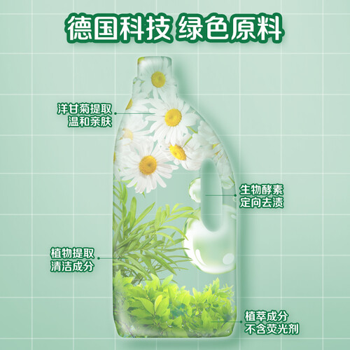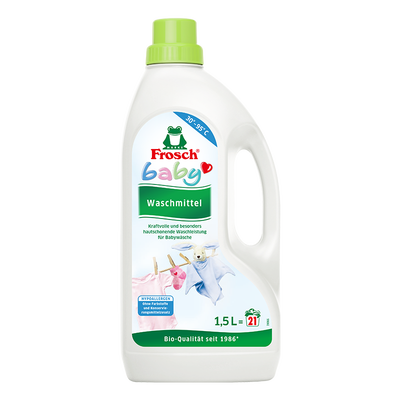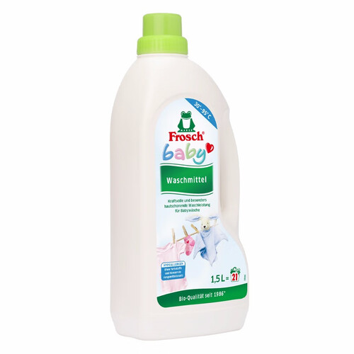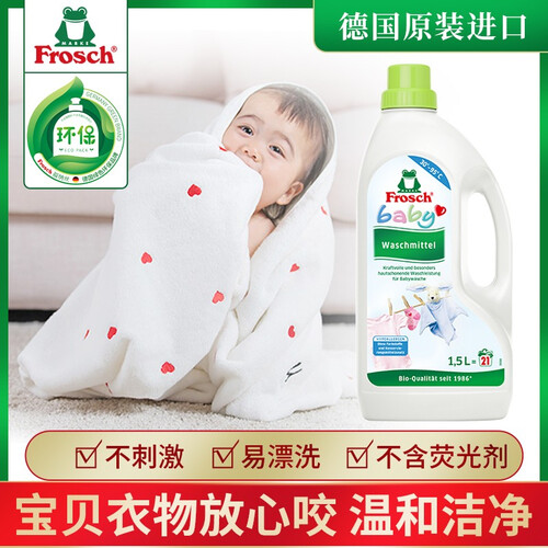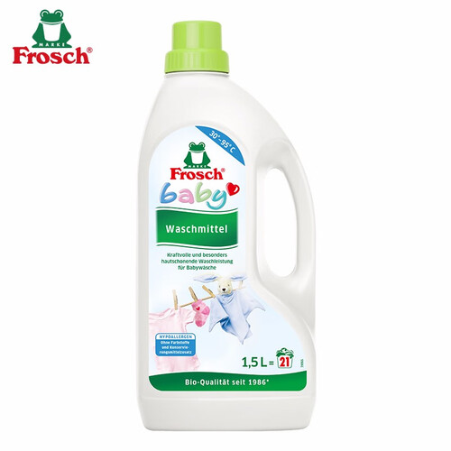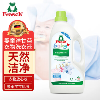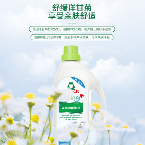 Frosch 婴童洋甘菊洗衣液精选天然洋甘菊提取物,洁净柔软衣物,宝宝穿上倍感舒适。配方温和低敏,护衣不伤手。