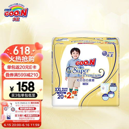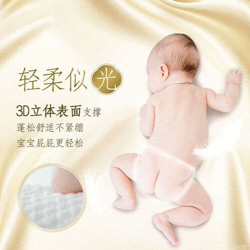 采用轻盈的芯体设计,瞬间海量吸收尿液,干爽而又透气,符合人体工学的立体裁剪,贴合孩子身型,穿戴起来不易脱落。