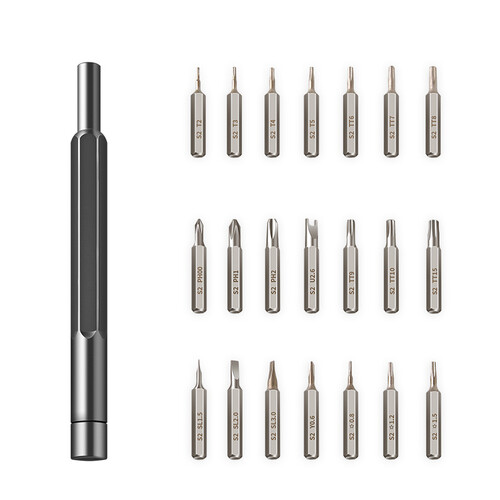 可旋转的六角手柄设计,手柄尾部松动可旋转,压住尾部后转动即可拆卸螺丝,批头采用的是S2合金钢批头,硬度高且韧性好。