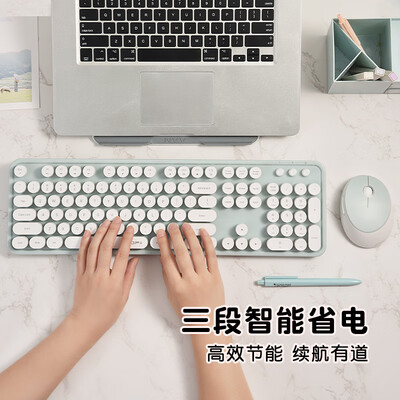 键盘底部设计可调节支架,使手腕处于放松角度,保证了手指的灵活度,轻松键入。10米有效工作距离,信号强,传输稳定。