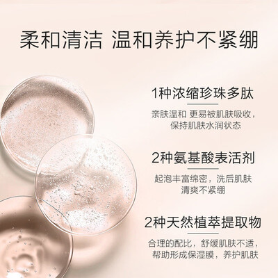 珍珠提取物复配植物成分,细腻肤质,氨基酸洁面,温和清洁,泡沫细腻,净化毛孔,洗后,肌肤水润净透。