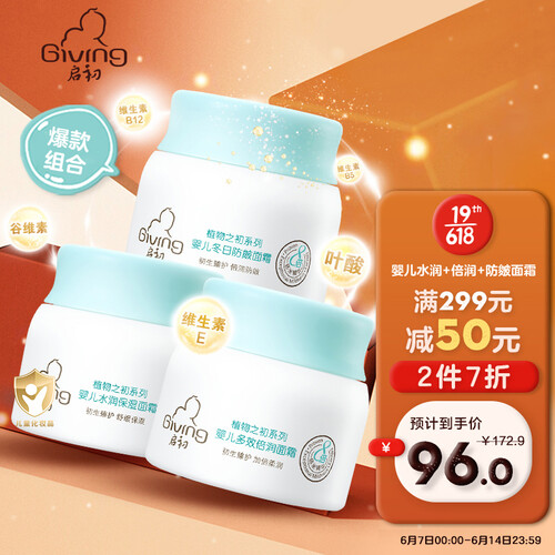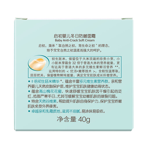 拥有天然小麦胚乳精华,能够水润肌肤,避免肌肤干燥泛红。蕴含多种精华,可以密集滋润呵护肌肤,让宝宝肌肤更加水嫩柔弹。