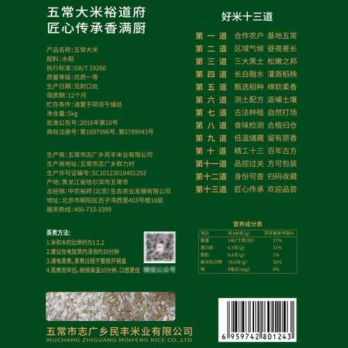 裕道府 五常稻花香大米