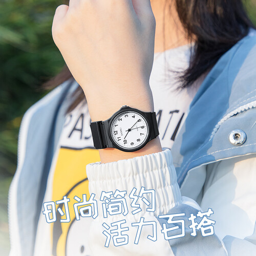 时刻美潮流黑色防水圆盘手表