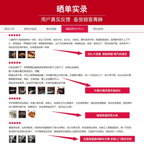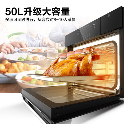 采用隐藏式的蒸汽平台设计,双蒸汽口立体强喷,有效防止水垢的产生,便于打理。50L大容量内腔,满足更多烹饪需求。