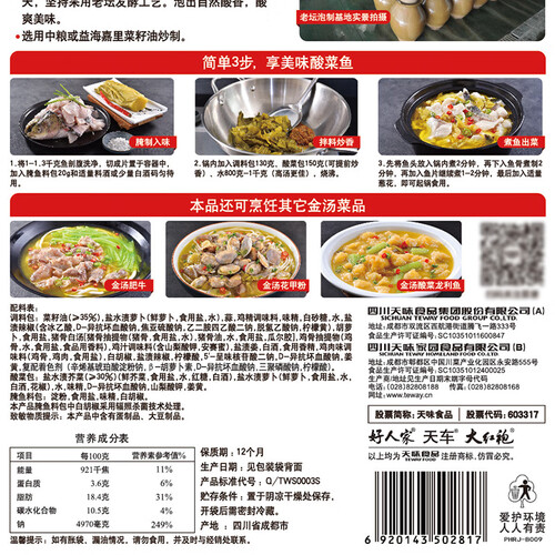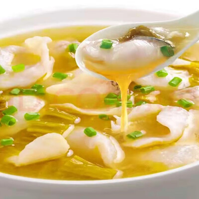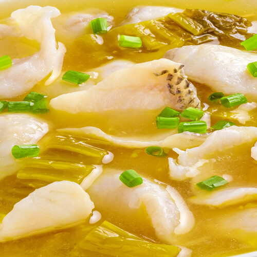 选用脆爽的老坛酸菜、川式泡萝卜及泡椒等原料,精心腌制成酸汤鱼料,使炖出的鱼汤呈现黄澄澄的色泽,带来鲜爽细滑的口感。