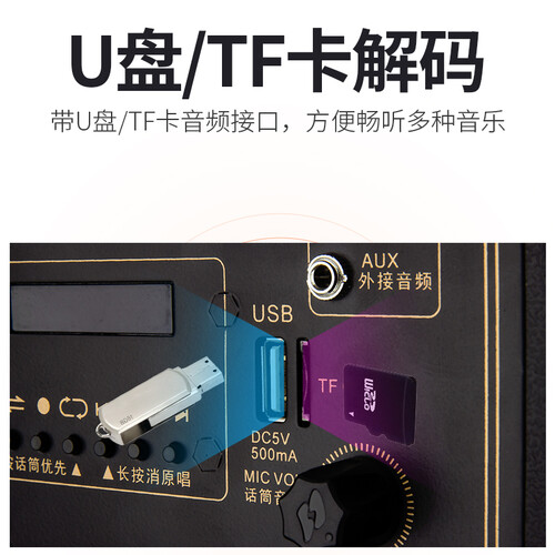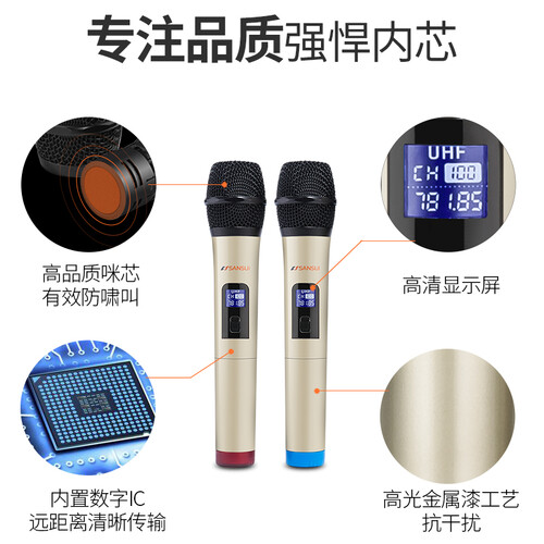 配备防啸叫的高灵敏度麦克风,使声音传输清晰稳定。40m无线传输麦克风,有效避免刺耳啸叫,让你专注于歌唱。