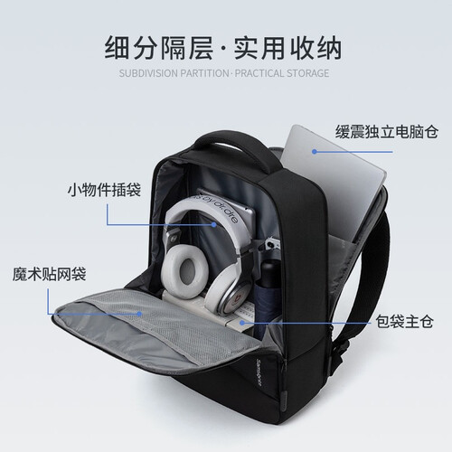开敞式设计,存取物品方便快捷,轻松提高出行效率;人体工程学肩带设计,缓解肩部压力的同时给你负重若轻的背负体验。