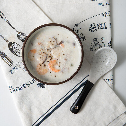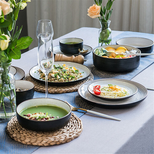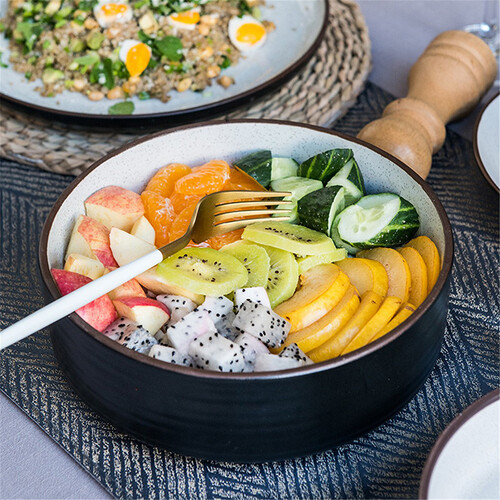 采用高温烧制而成的优质炻瓷,耐热稳定不易破裂,黑白主题设计,碗内覆盖亮釉保护膜,浅浮雕螺纹圈,光滑有质感。