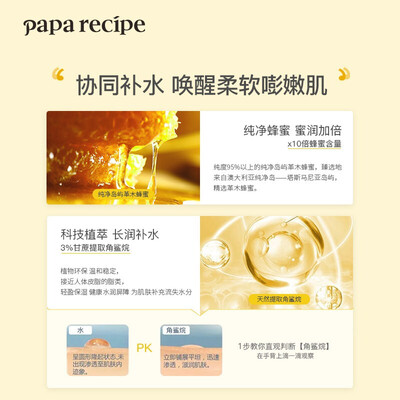 蕴含天然蜂蜜、蜂胶成分,双重滋养保湿,使肌肤长久水润亮泽。不添加酒精、防腐剂等有害物质,温和亲肤,使用安全放心。