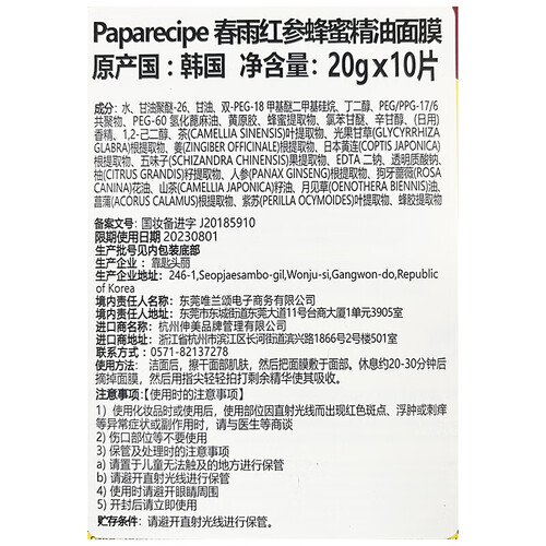 萃取韩国天然蜂蜜蜂胶成分,汇入肌肤水分,加强保湿,增强肌肤紧致弹润。天然楮树纤维膜布,柔软轻薄,舒适贴合肌肤轮廓。