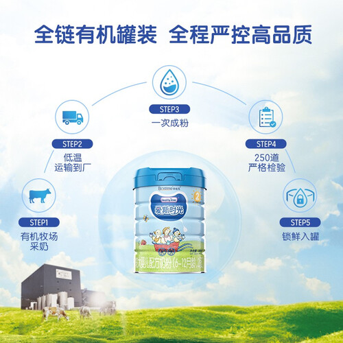 甄选自法国有机牧场,奶牛采用天然农作物喂养,富含多种矿物质,亲和好吸收。特有有机乳脂中的SN-2,帮助宝宝软化便便。