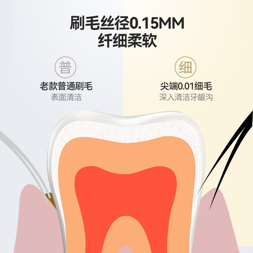 圆形排布的刷孔,搭配细密的刷毛,帮助深层清洁牙缝和牙龈沟,并能减少对牙龈的刺激性,使用起来更加安心。