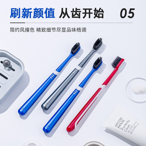 极简生活 高密竹炭灰软毛牙刷