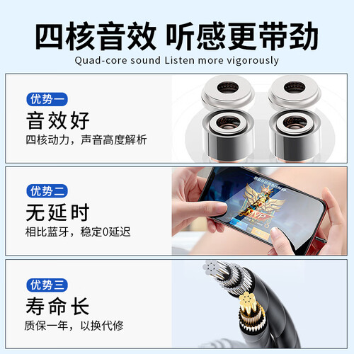 耳机采用独立分频驱动的设计,高低频动力强劲,而且拥有4个发声单元,可以带来更加震撼的音效。