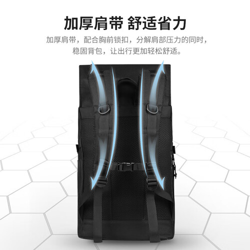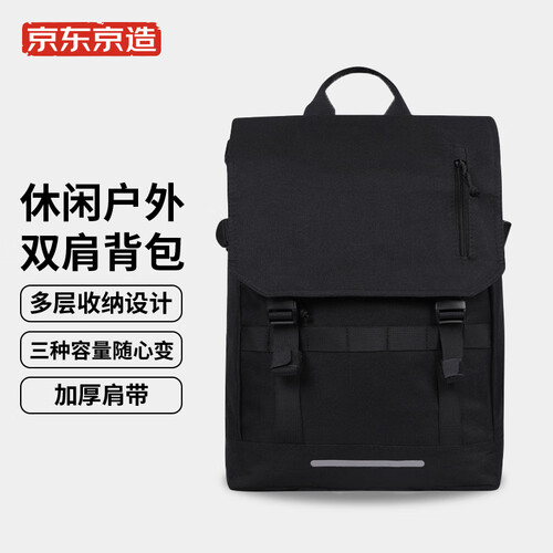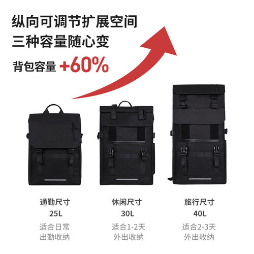 可纵向扩张双肩包的容量,根据不同的需求进行调节,日常出行皆可使用。包面上有反光条设计,夜间行走保护人身安全。