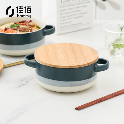佳佰 带盖双耳陶瓷碗