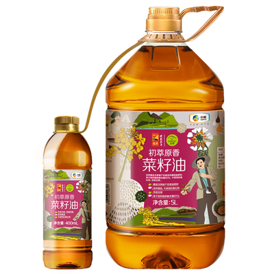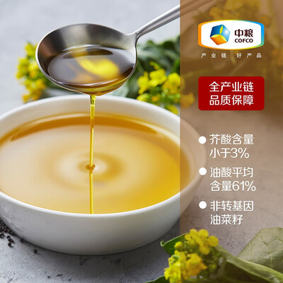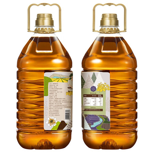 优选当季双低油菜籽,采用传统物理压榨工艺,地道原香,油酸平均含量61%,0抗氧化剂,只选取头道初油,金黄透亮油烟少。