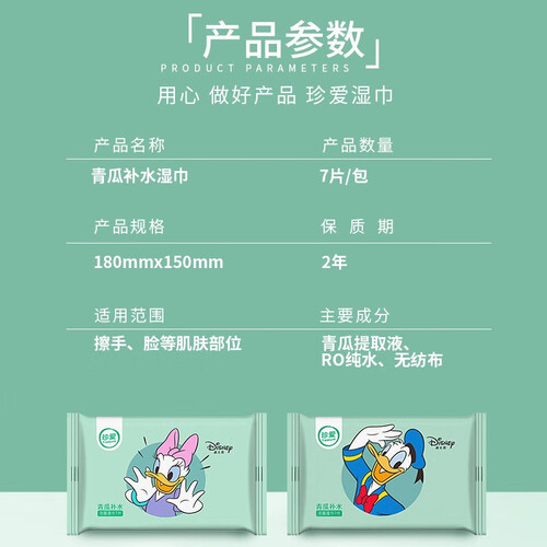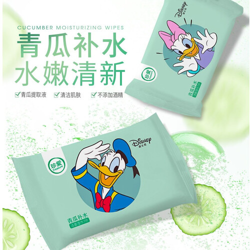 此款湿巾含有青瓜植物提取液,有效清洁肌肤污垢,提升整体实用性;不添加酒精与荧光剂,无有害成分,使用起来更安全。