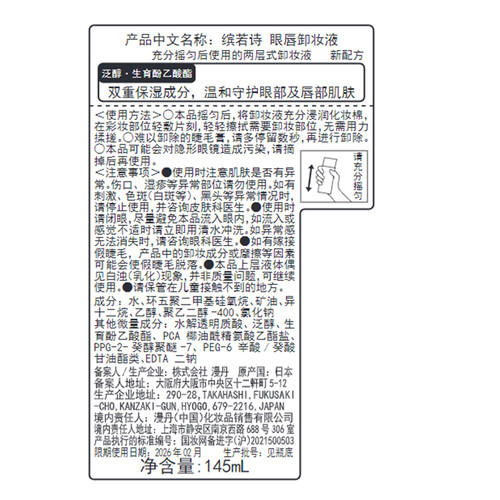 专门针对顽固眼妆设计,水油双层质地,无需揉搓即可卸除防水睫毛膏和眼线,质地清爽温和,呵护眼部周围肌肤。